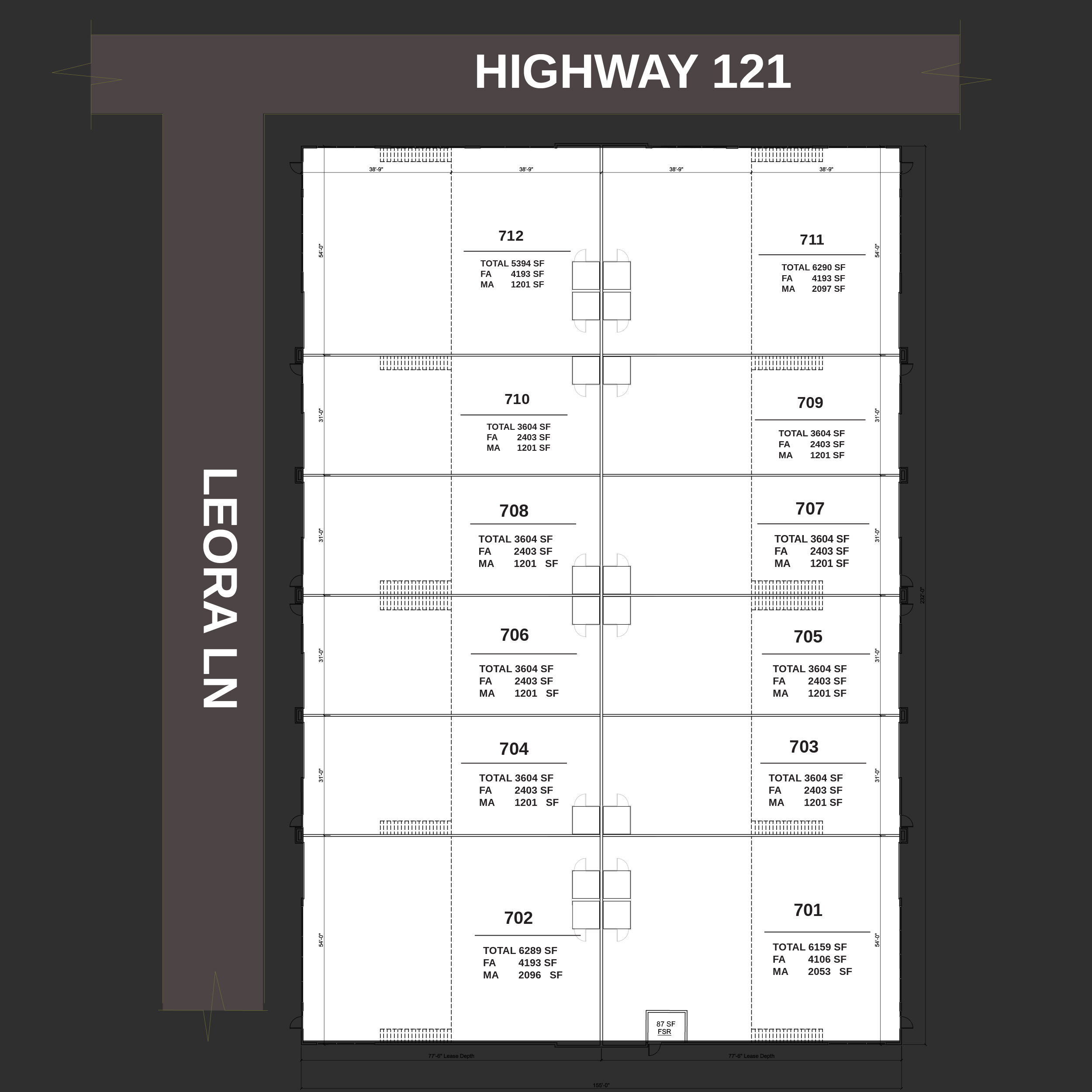 Below, explore the detailed floor plans for our two premier buildings, each meticulously designed to accommodate your business needs. Additionally, our comprehensive site plan provides an overview of available and sold units, guiding you towards your ideal space in our thriving community.