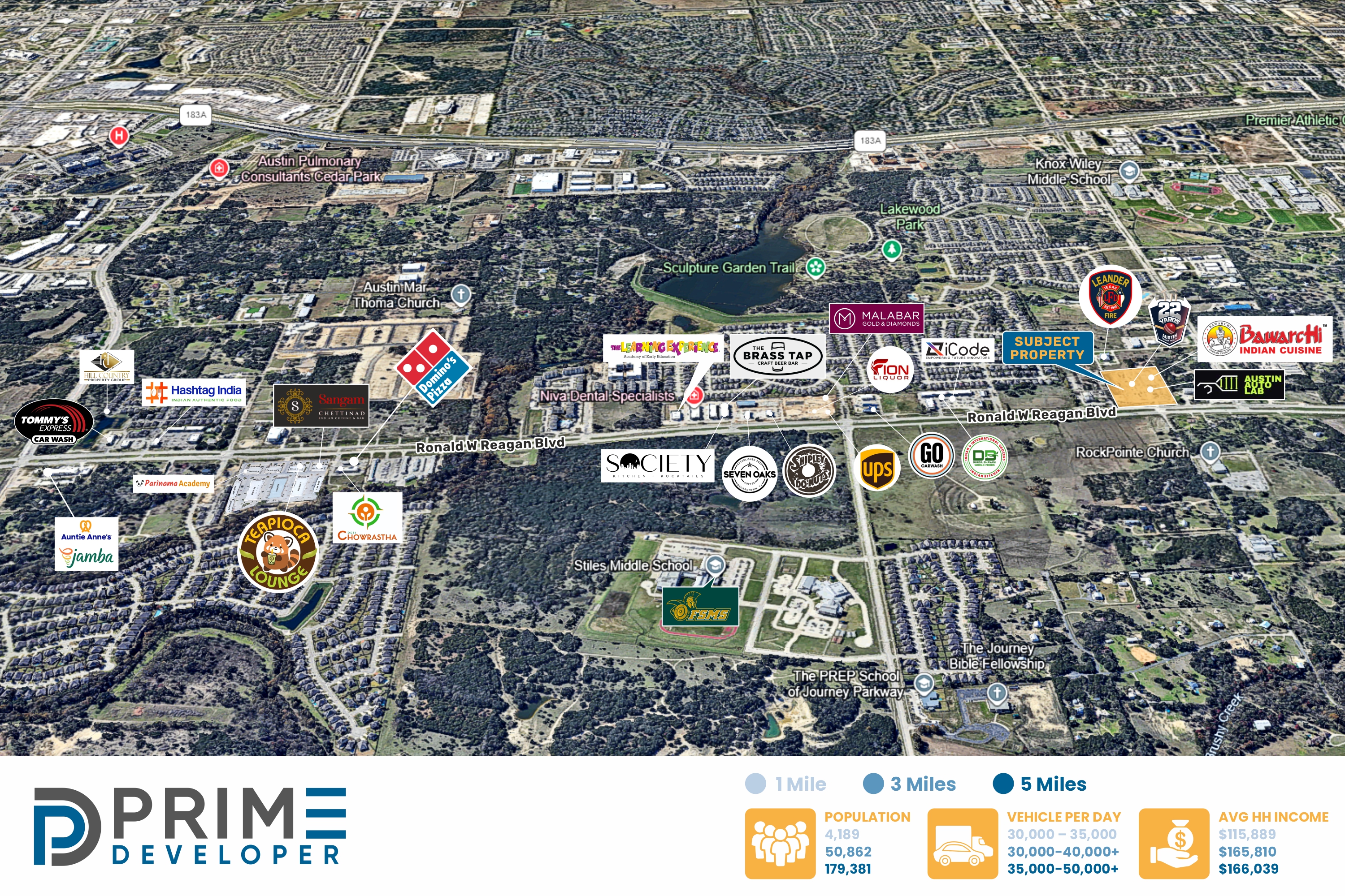 Located at 15901 Ronald Reagan Blvd, the property offers strong visibility along a major corridor with over 35,000 vehicles per day, providing excellent exposure and convenient access across the Austin area. Surrounded by rapid residential and commercial growth, this is one of the region’s fastest-expanding suburbs — making it a prime opportunity to invest, establish, and g