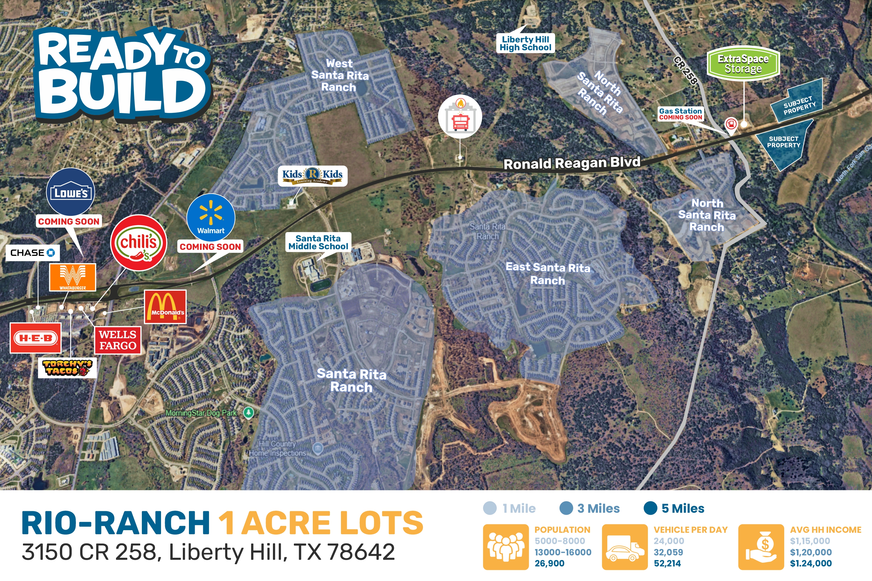 Adjacent to the highly desirable Santa Rita Ranch community and surrounded by strong demographics, the area features an average household income of $165,703 and projected population growth within a 2-mile radius. The property is minutes from top conveniences including H-E-B, Walmart, Starbucks, Lowe’s, and the retail and dining hubs of Leander. Excellent accessibility via Highway 29, US 183, and nearby regional connectors reinforces long-term value.